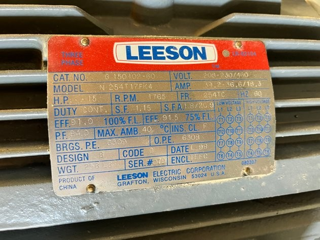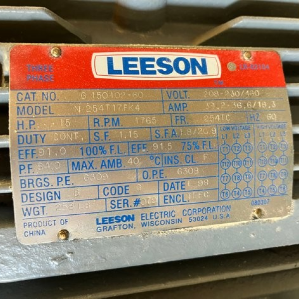 Leeson 15HP, 208/230/460V, 60Hz, 3 Phase