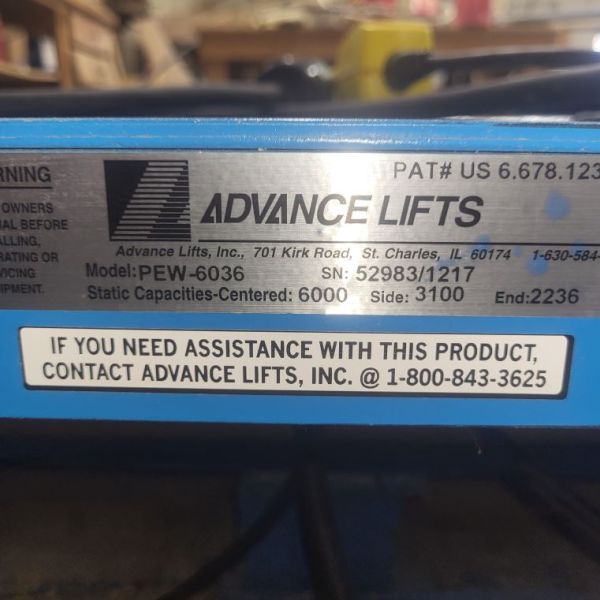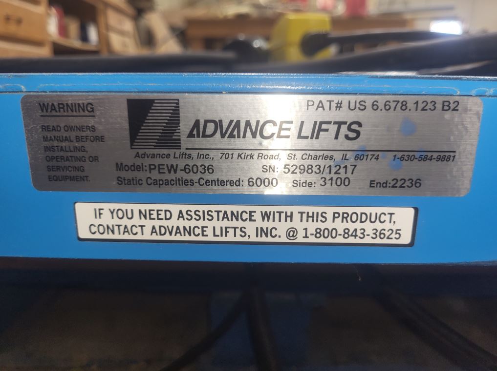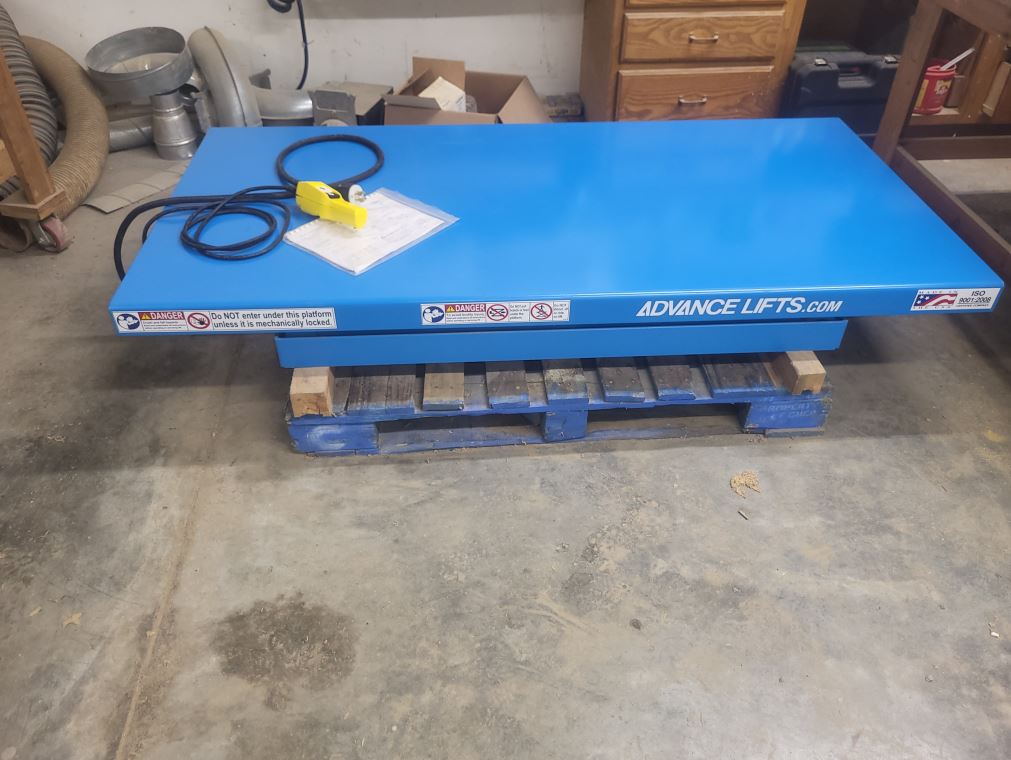 ADVANCE SCISSOR LIFT 6000LB NEW, NEVER USED 6 1/2″ MINIMUM HEIGHTH 43″ MAXIMUM HEIGHTH