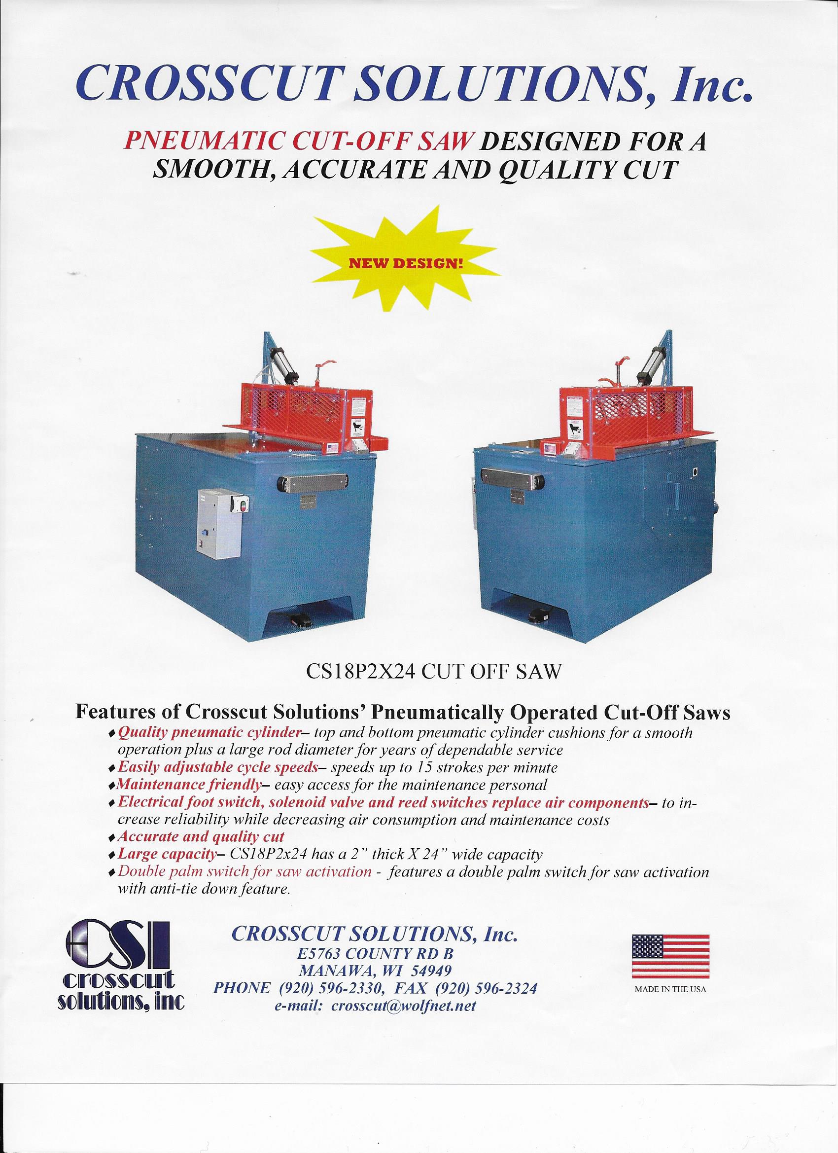 •Large capacity– CS18P2x24 has a 2” thick X 24” wide capacity