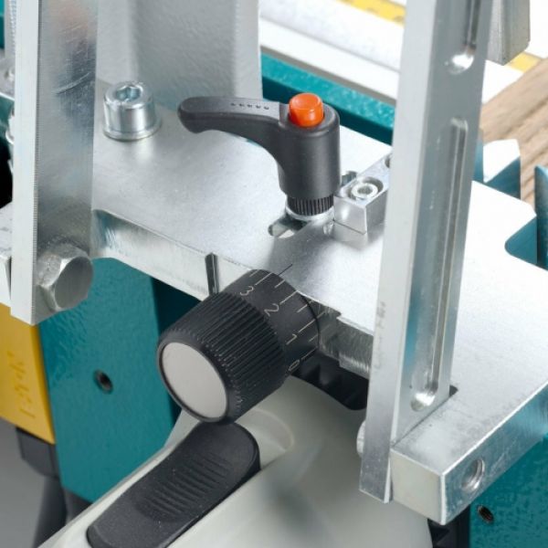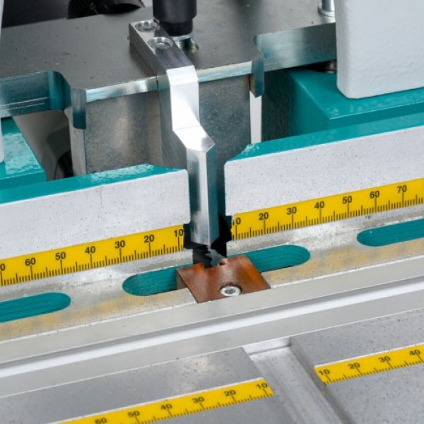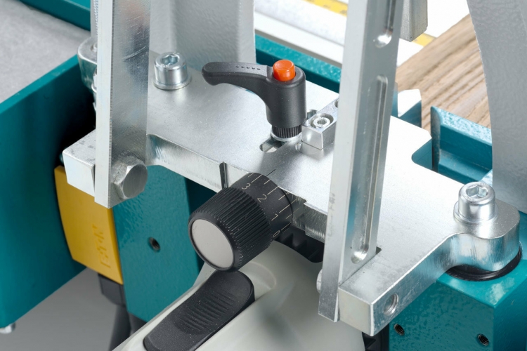 The main benefits compared to the manual machines are faster and more comfortable operation, more consistent results due to set routing feed rates and the fact that both hands can remain on the material during the routing sequence. This is an important advantage when processing longer parts. The keyway location is adjusted by positioning the guided center fence plate on the machine table;