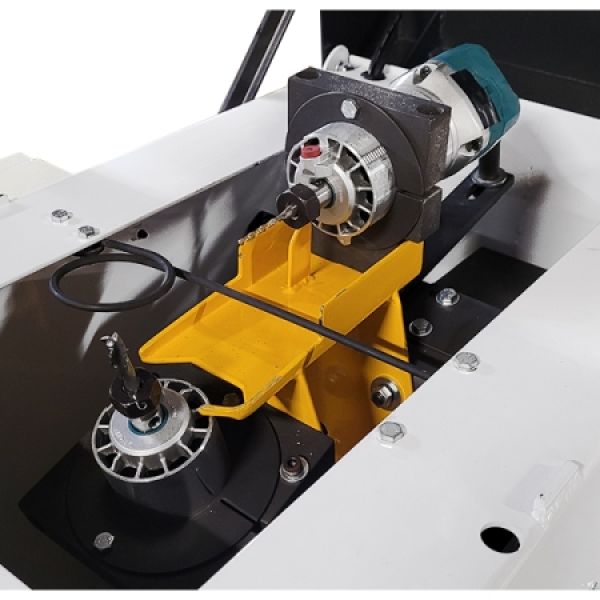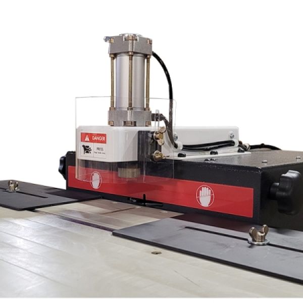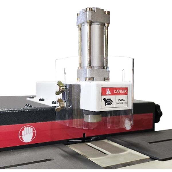 The Cantek PC100 Production Pocket Cutter allows for fast and efficient creation of strong, stable pocket joints. The machining cycle is actuated using a convenient foot pedal which actuates a pneumatic clamp to hold the material firmly in place, then mills a low-angle pocket, and finally drills a pilot hole. All of this happens in a fast cycle time of just 1.5 to 2 seconds! The sturdy table can be easily lifted to provide access to the router and drill for fast and convenient tool changes. The robust structure & convenient design ensure the PC100 pocket cutting machine can thrive in production environmentKey Features