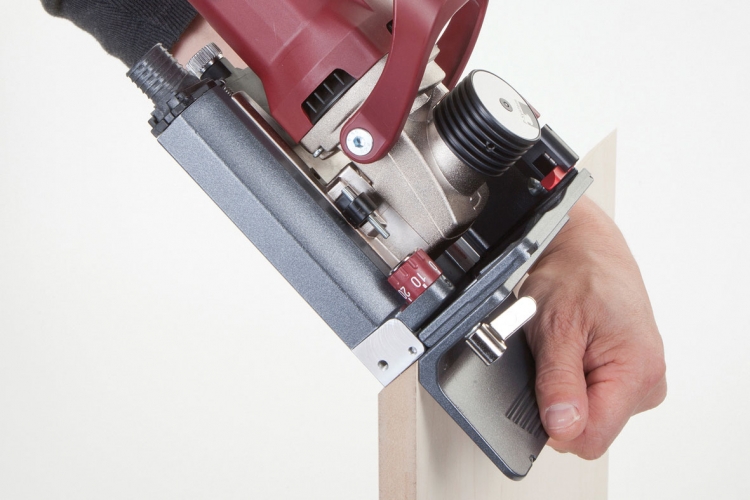 The Zeta P2 is the profile biscuit joiner for the P-System may be used to join components in solid wood, plywood, MDF, particleboard, plastics, solid surface, and more. The integrated vertical mechanical drive on the cutting spindle of the Zeta P2 is the centerpiece of this profile biscuit joiner. During the cutting process, the vertical mechanical drive automatically performs a vertical movement to create the profile groove. All P-System fittings are then manually inserted into this groove, ensuring a fast form-locking anchorage. The Zeta P2 can cut P-System grooves for connectors with varying installation depths simply by turning the P-System depth adjuster, thus removing the need to change cutters.