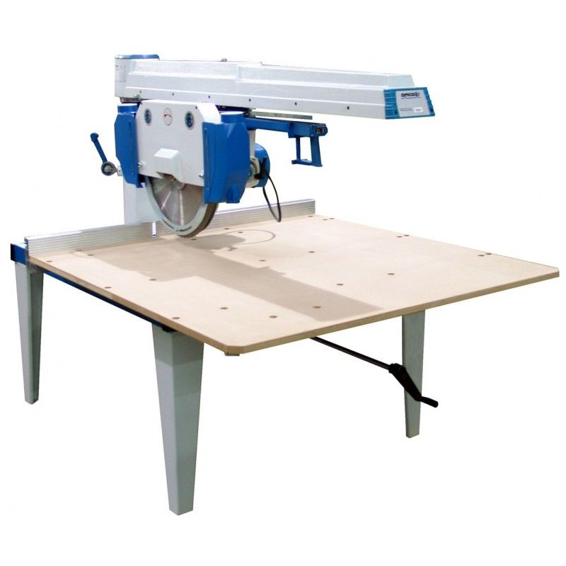 20″ Radial Arm Saw 7HP Motor 49 7/32″ Cross Cut Capacity 59″ Rip Capacity. Cast Iron Arm. These precision radial arm saws are very versatile, multi-purpose machines. This versatility is due to the possibility of swiveling and tilting both in the horizontal and vertical axis which makes the machines especially suitable for furniture manufacturers, frame makers, sawmills and carpentry shops. There is a wide range of accessories available to adapt the machine to each and every requirement.