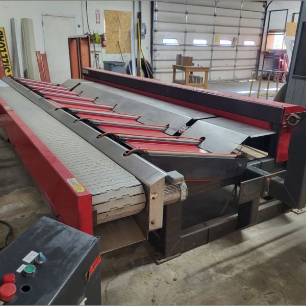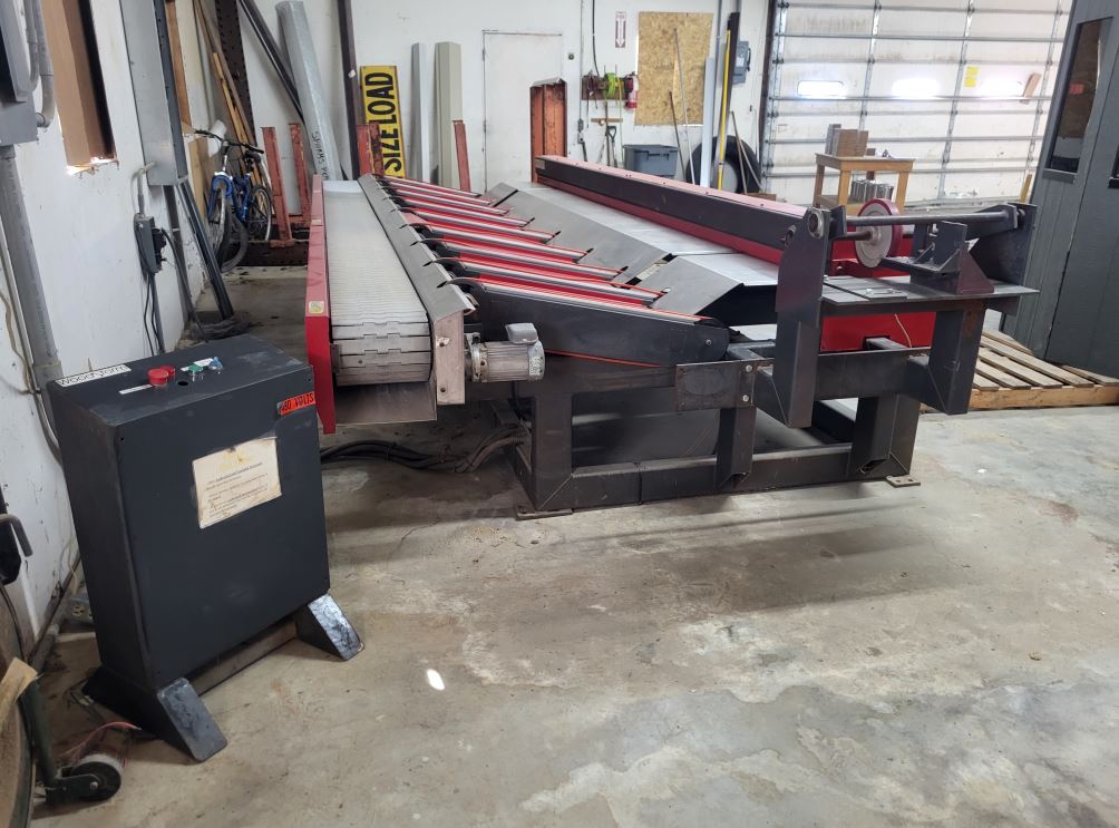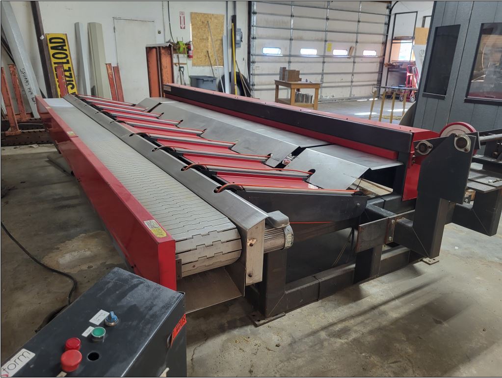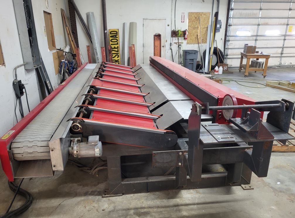 WOODSTORM MOULDER RETURN CONVEYOR 7′ WIDE, 16′ 10″ LONG. BOUGHT USED. NEVER USED A FEW SECTIONS OF CONVEYOR ARE BROKEN, DOES NOT HINDER PERFORMANCE