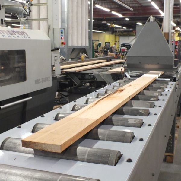 The Cameron Automation Rip-One is a complete lumber scanning, optimization, and gang ripping work cell designed for smaller shops. The Rip-One uses high resolution scanning technology to view both sides of a board to capture board dimensions and defects. The high resolution images are used to optimize each and every board going through the system. It also increases productivity dramatically by transforming gang ripping into a single person operation. List price for the entire system for ripping 12″ lumber, including a movable blade Rip Saw is tens of thousands or potentially hundreds of thousands of dollars less than other companies scanners alone. Optimization systems that don’t incorporate scanners typically read the width of the board in one or more places and at best work with only a two dimensional outer profile of the board. They are incapable of detecting wane or defects in the board. These optimizers can give a “best guess” ripping solution based on the board’s profile, but an operator is still required to finalize the solution based on the actual characteristics of the board. The Rip-One on the other hand brings the power of lumber scanning to the smaller shop, and until now, only larger shops could afford the advantages that could be gained by scanning lumber before ripping.