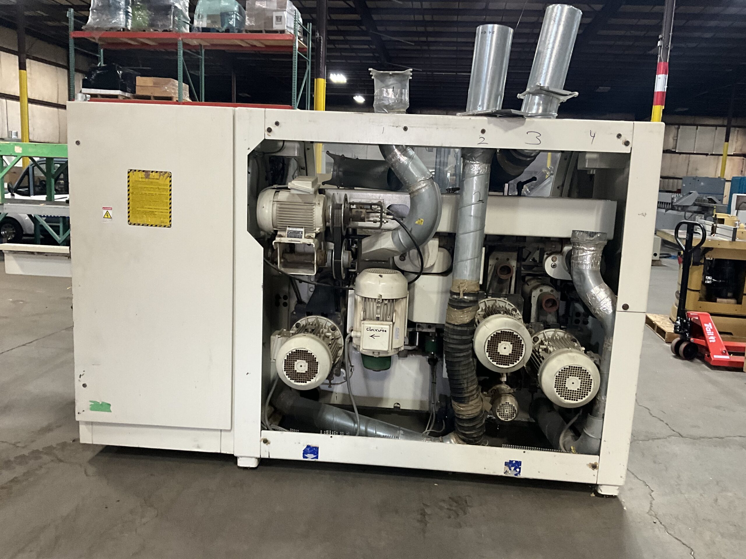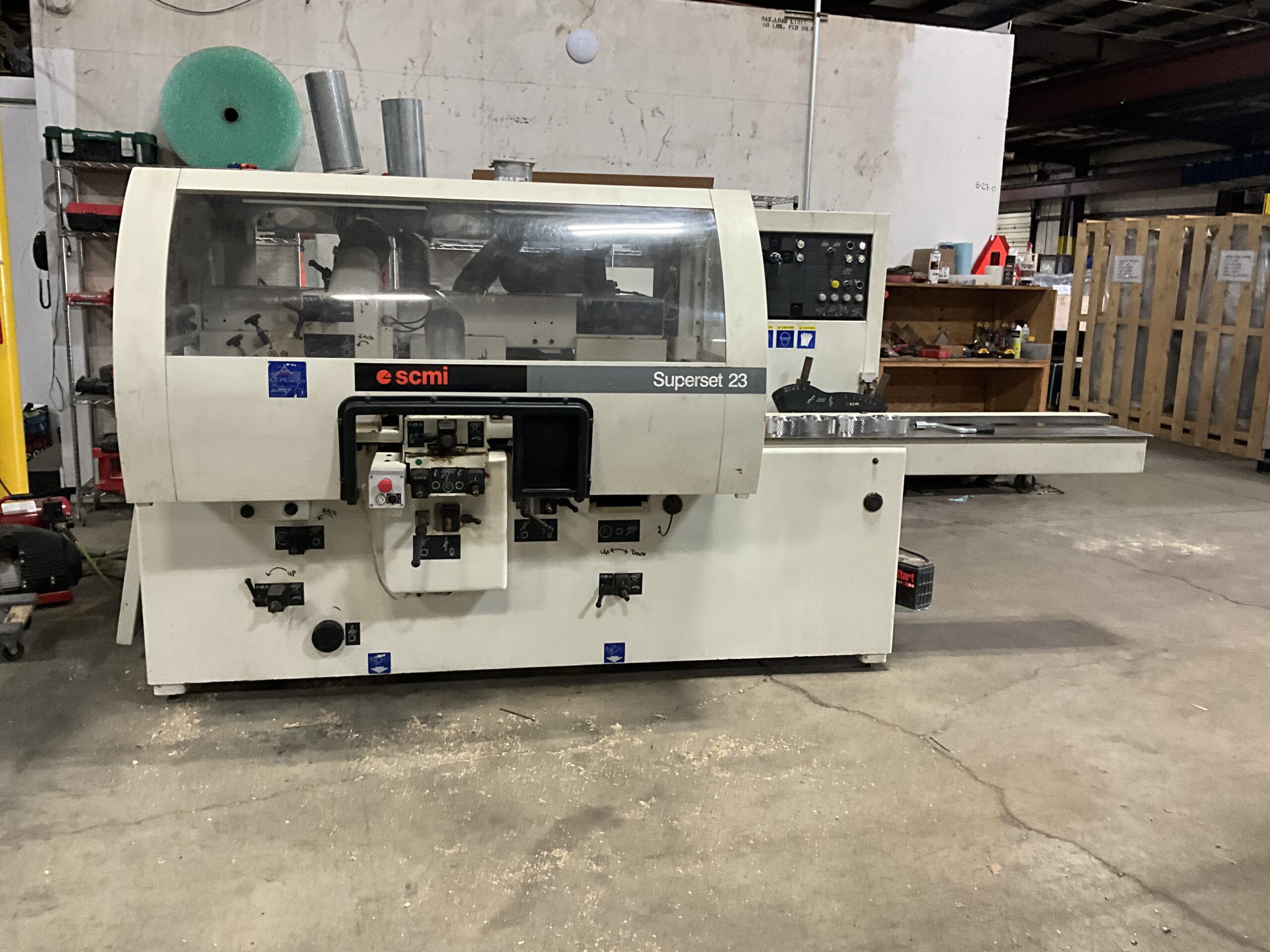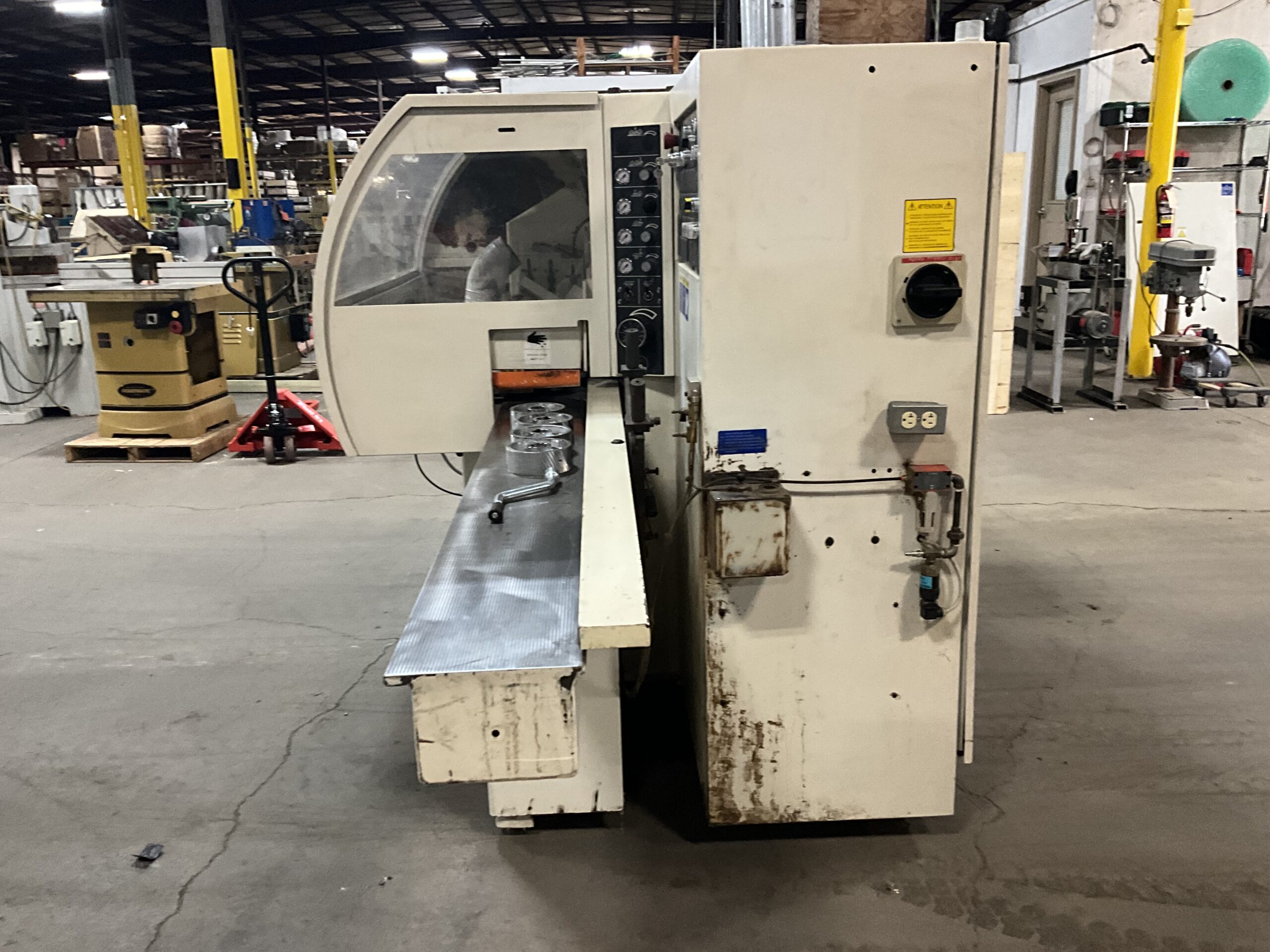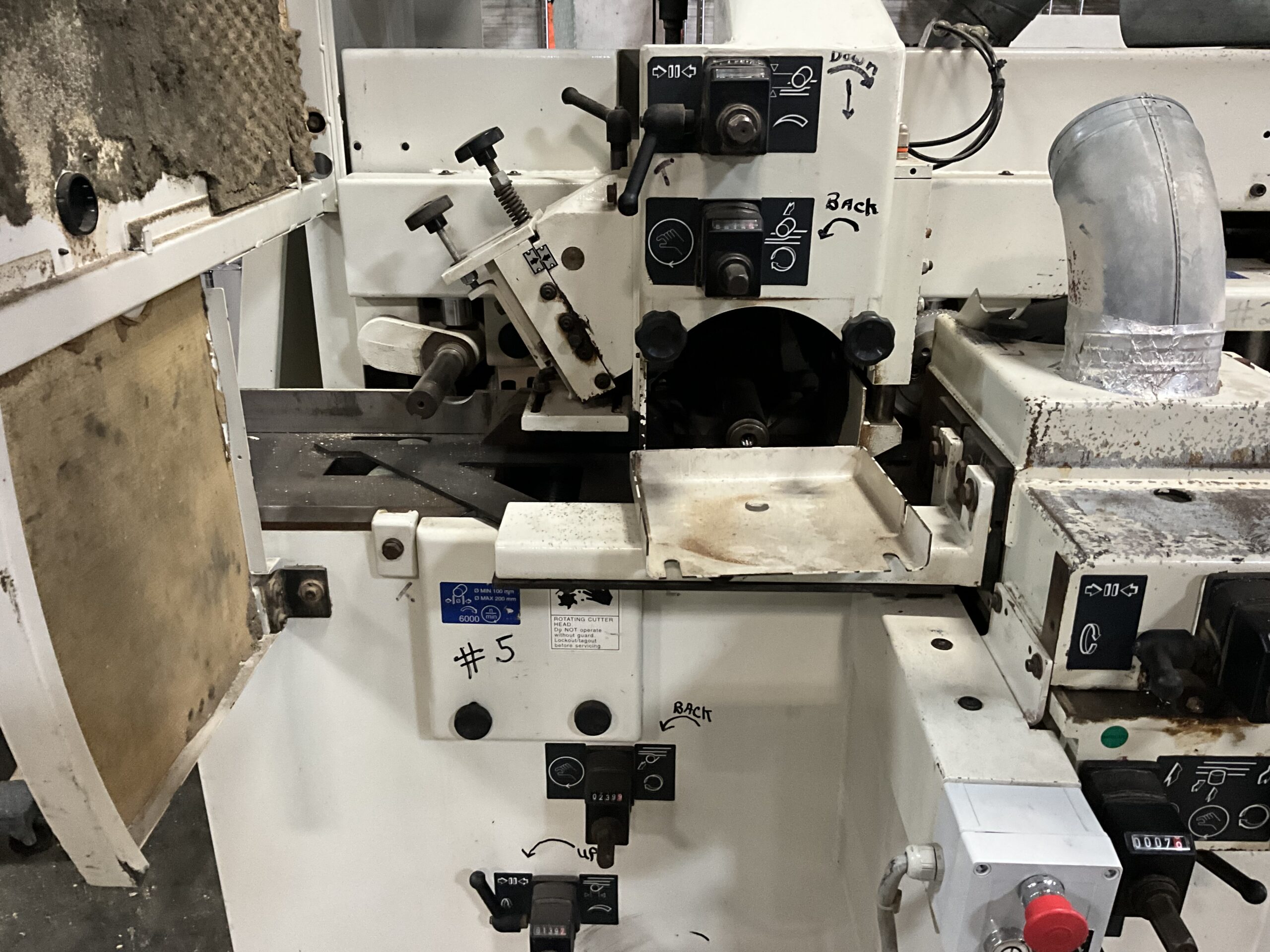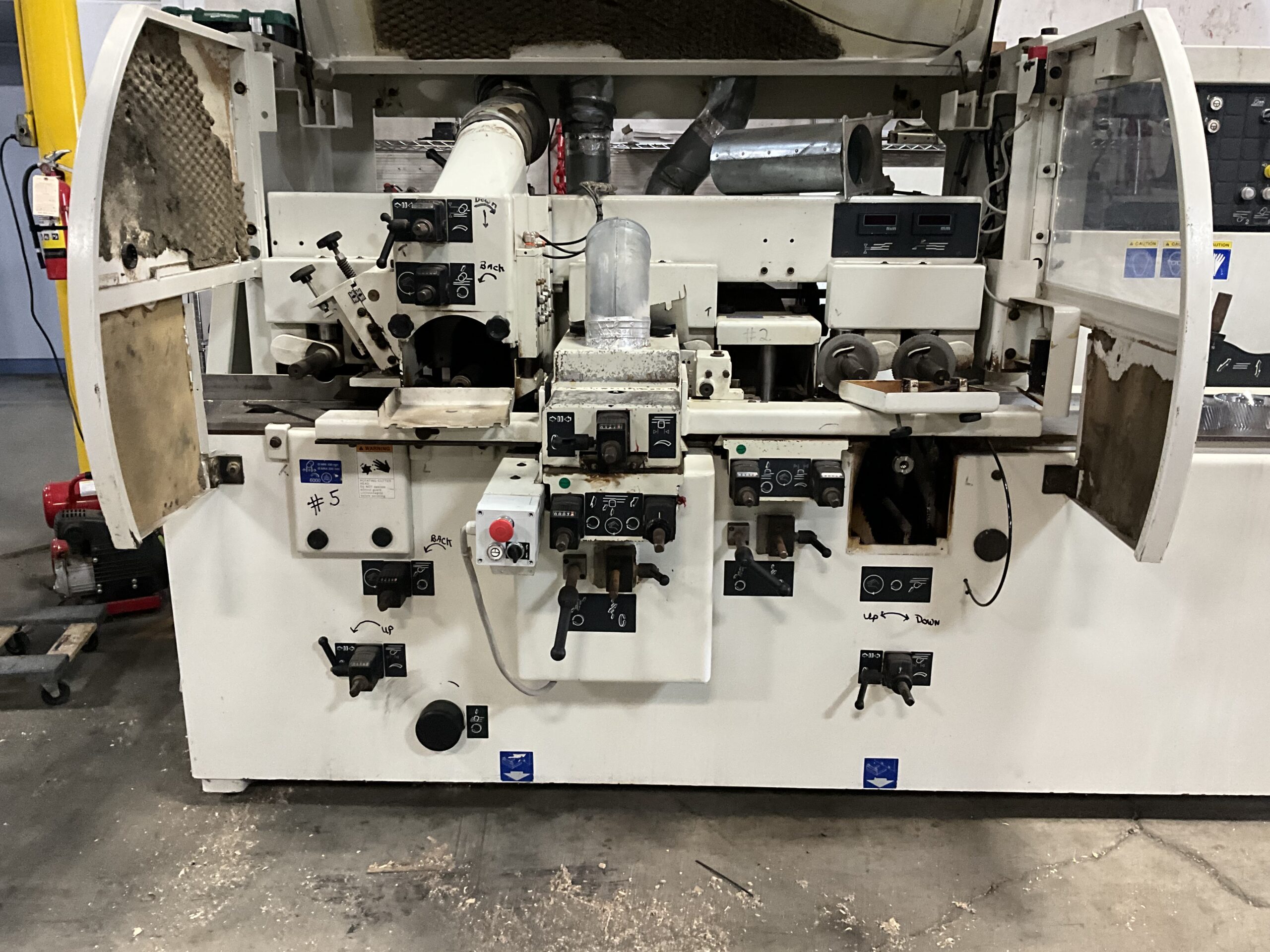 Spindle: Dia. 1-13/16″ with cutterhead speed at 6,000 RPM. All spindles with mechanical digital readouts for height and width adjustments. Digital readout for chipbreaker and pressure element top spindle -
