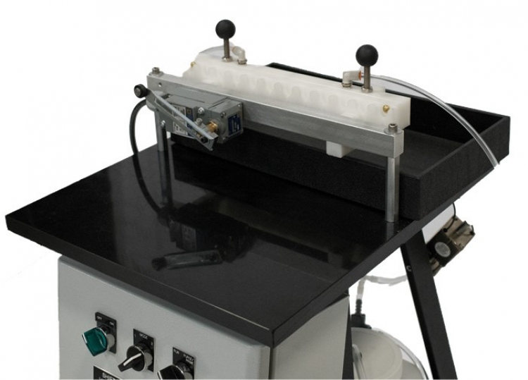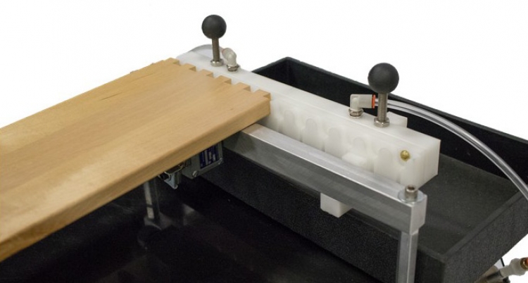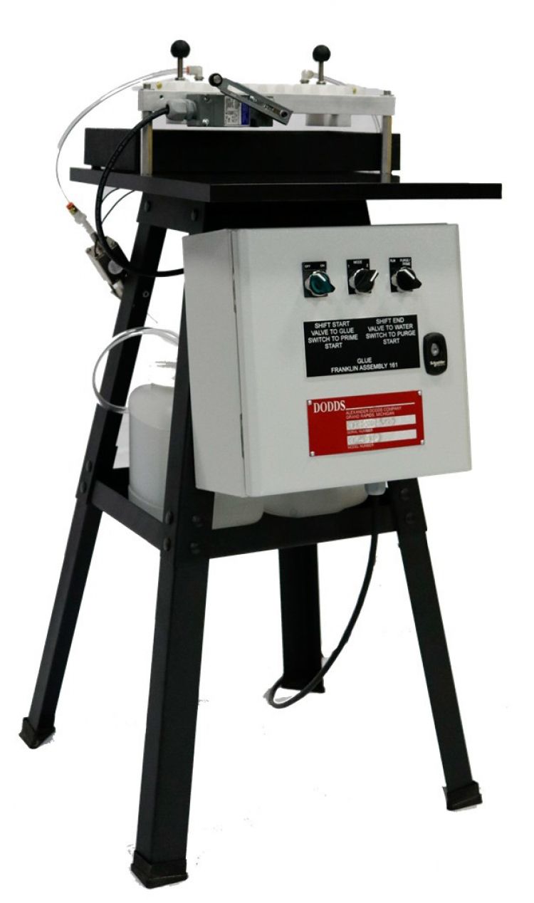 DODDS universal drawer gluer ModelGP-S12 glues a range of drawer construction types quickly and neatly. Ideal for custom and long production runs, machine offers labor savings through easy operation, precision gluing automatic clean-up.Other DODDS machines for drawer assembly includeC-48N universal drawer clamp, which flushes the drawer side tenons to the front.