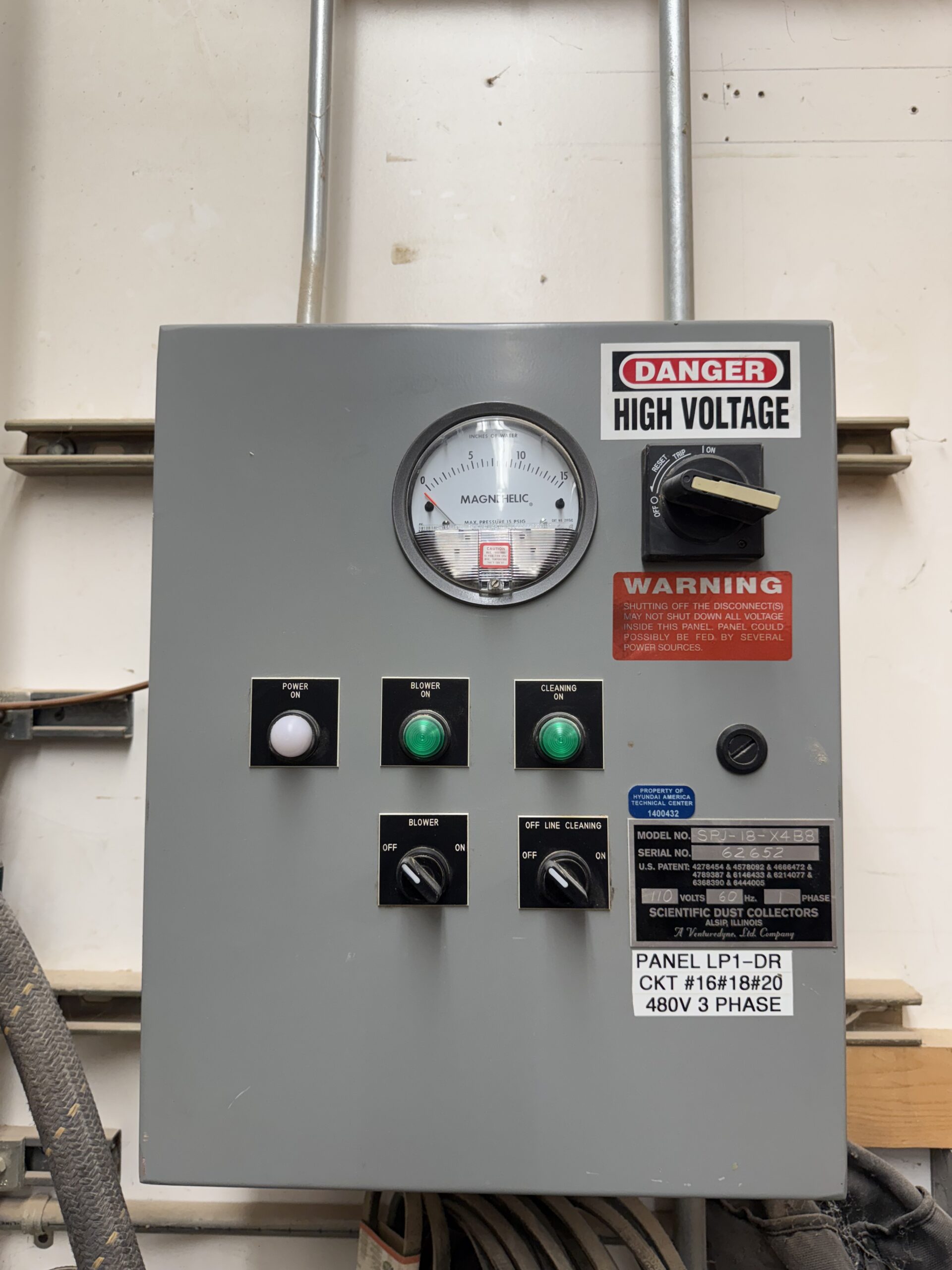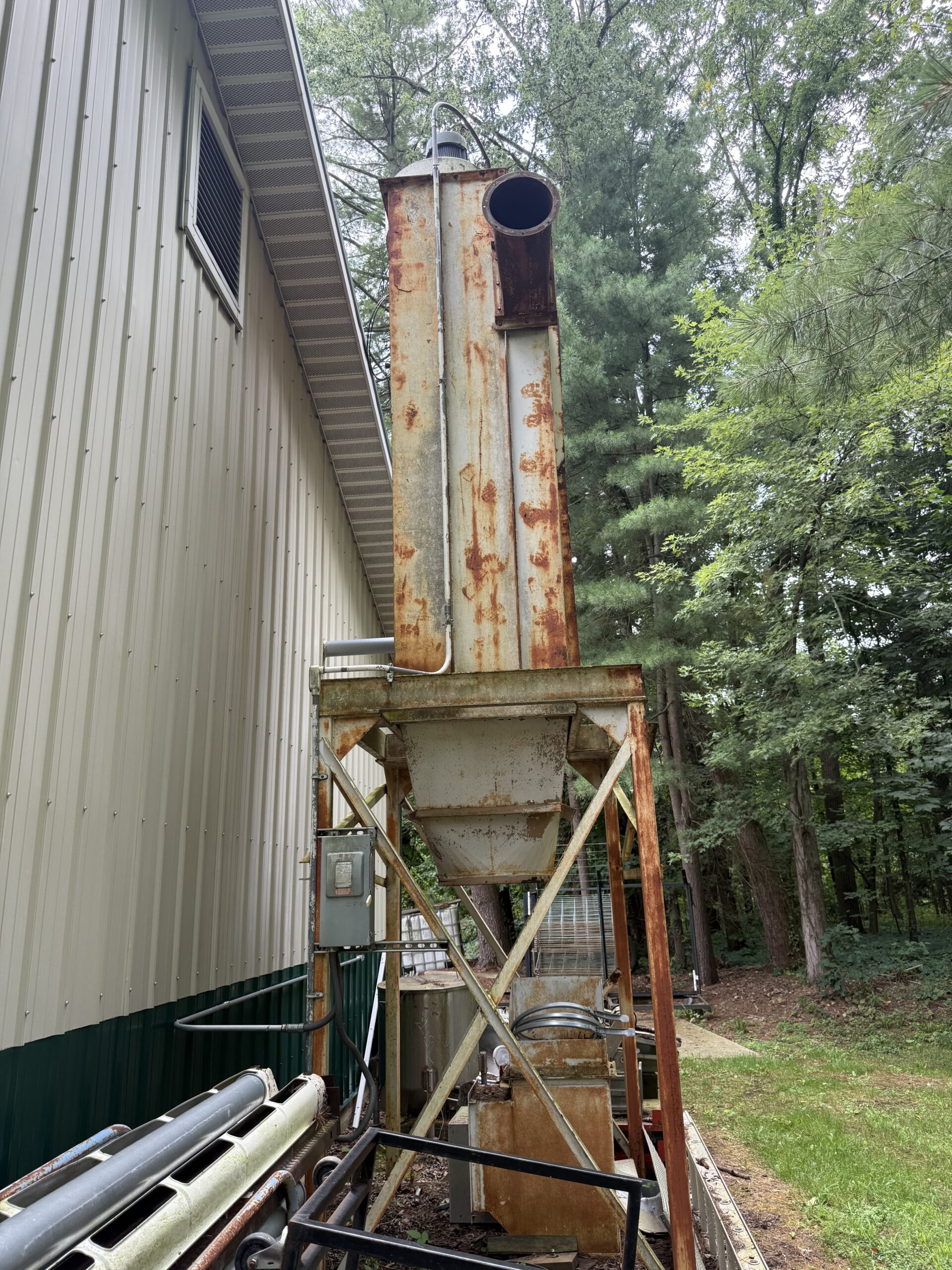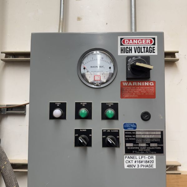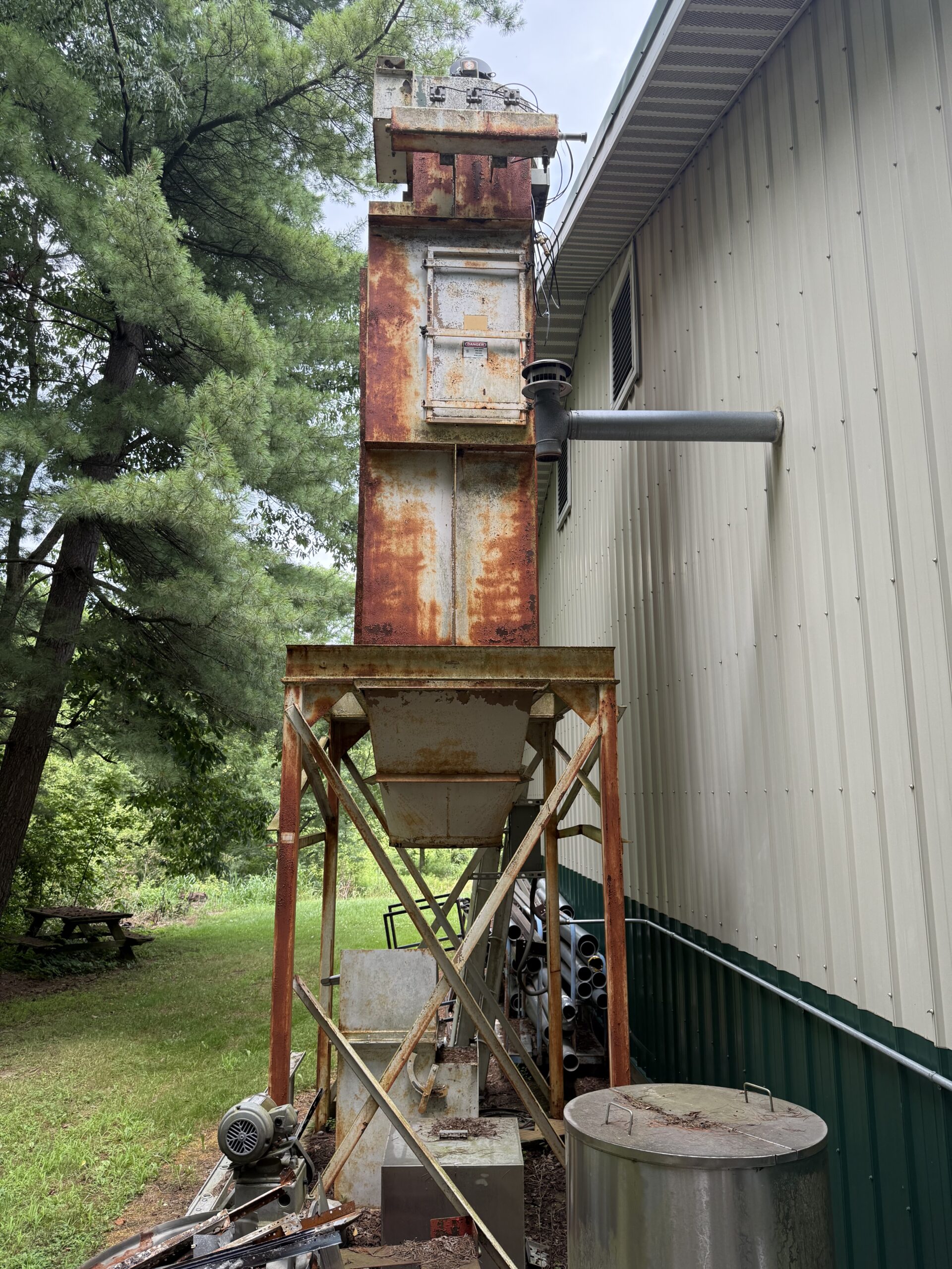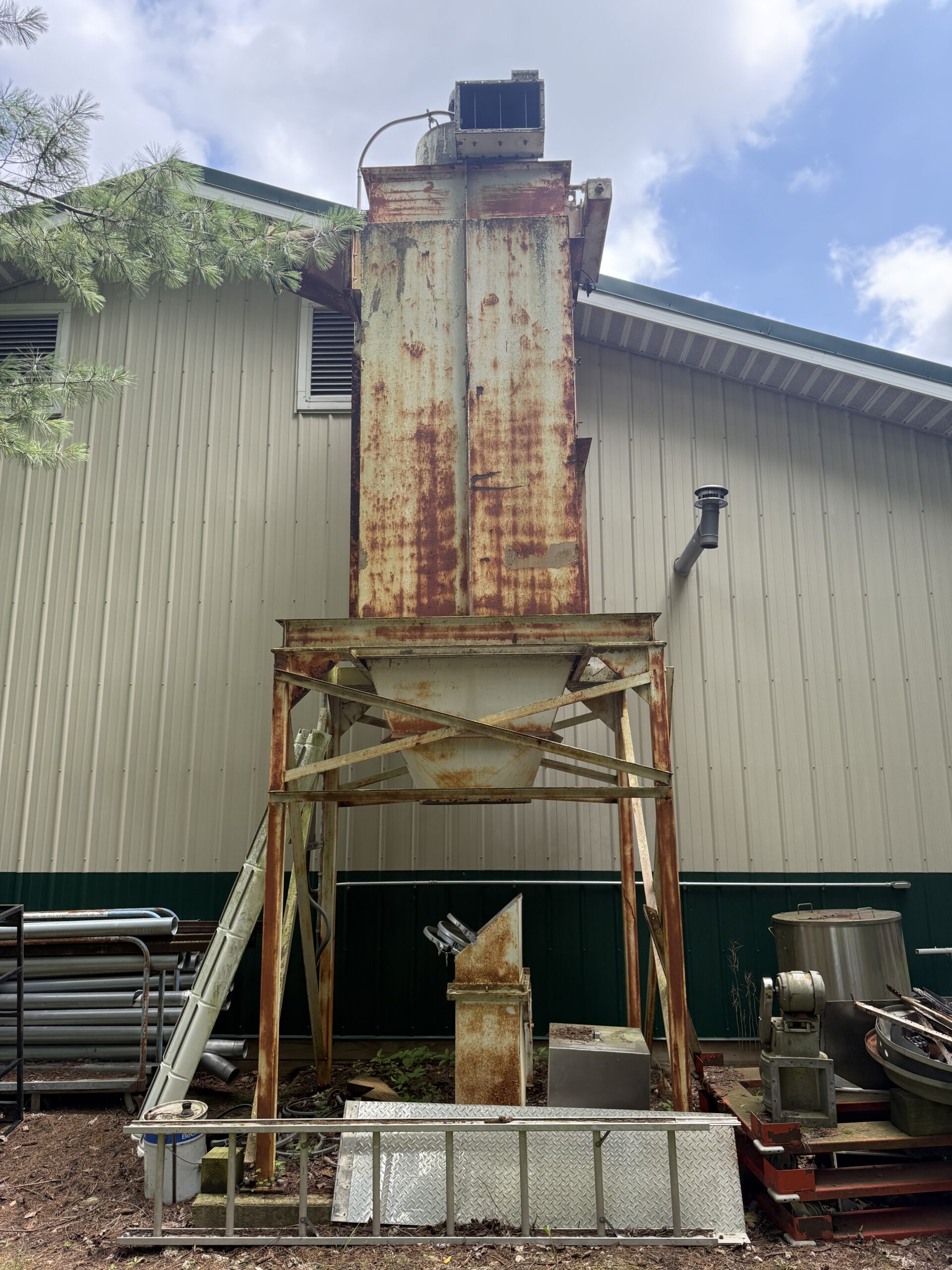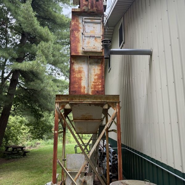 Scientific Dust Collector 15HP Bag house with portable dump bin. 170 square feet of filter area with pulse jet air blast. Installed a new motor on it, but never finished installing.