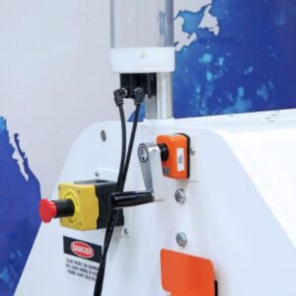 The A15 Stile and Rail Shaper is available with hopper feed that clamps the stack of boards while the bottom board is driven into the machine. Once the board has left the hopper, the clamps release letting the next board(s) drop straight down. This permits boards of different lengths to be stacked in the hopper. The A15 Stile and Rail Shaper can be configured to accommodates a sanding station.