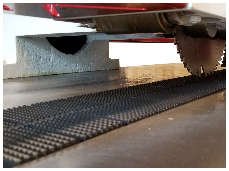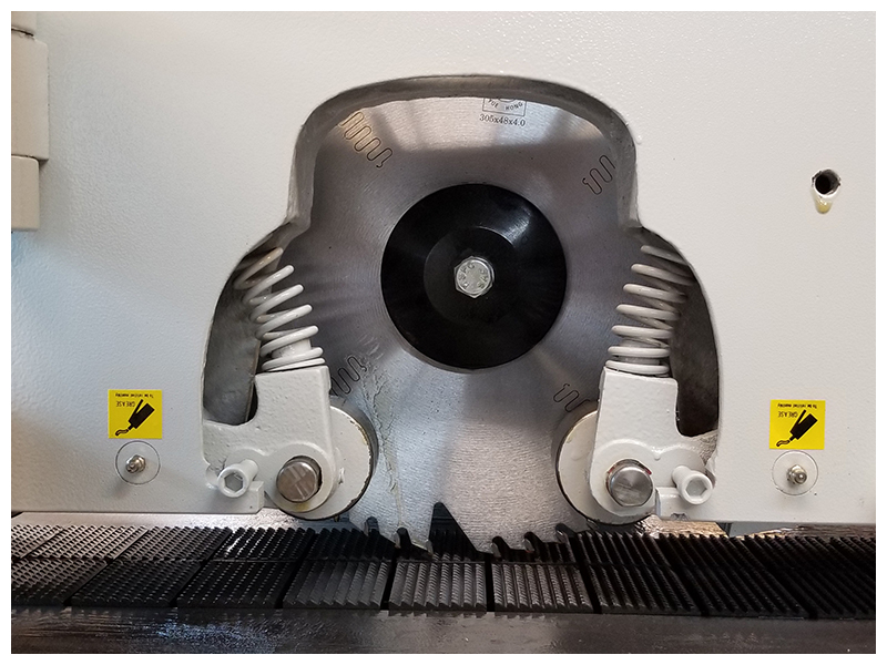 The CANTEK 303S Straight Line Ripsaw is a straight line ripsaw that is the ideal ripping upgrade for those looking to prepare material for a moulder or for producing face frame material. The 303S automatically feeds the material for consistent rip results. The cast iron feed chain runs on double V guide rails and holds the material firmly for precision straight cutting. A powerful 10 HP motor with maximum 12” blade provides a cutting depth up to 3.35”. A micro adjustable infeed fence allows for quick setups to ensure precise rip widths with fast adjustments.
