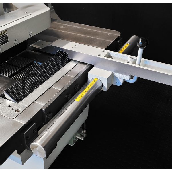 - Eight hold down rollers over six rows ensure material is firmly held during cutting operations for a longer period resulting in a straighter, more precise cut.
