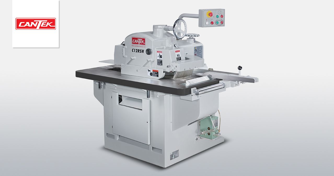 The Cantek C12RSH Straight Line Ripsaw is a single-blade ripsaw geared towards the shop looking to increase efficiency in their ripping operations but can not justify a multi-blade ripsaw. With its precision cast iron chain and track assembly, and extended pressure section, the C12RSH can produce a glue joint finish ready for panel glue-up right out of the saw.
