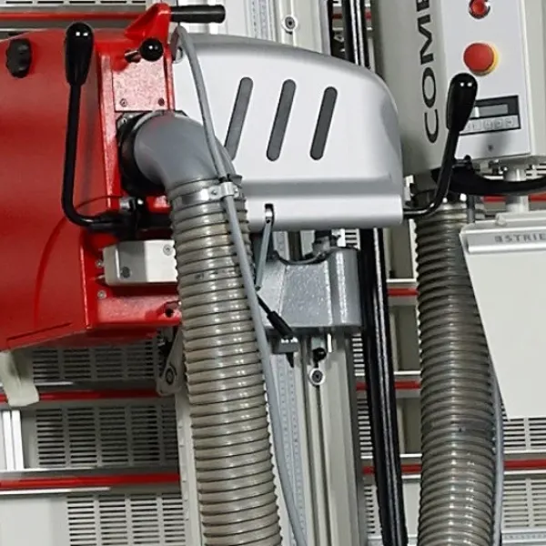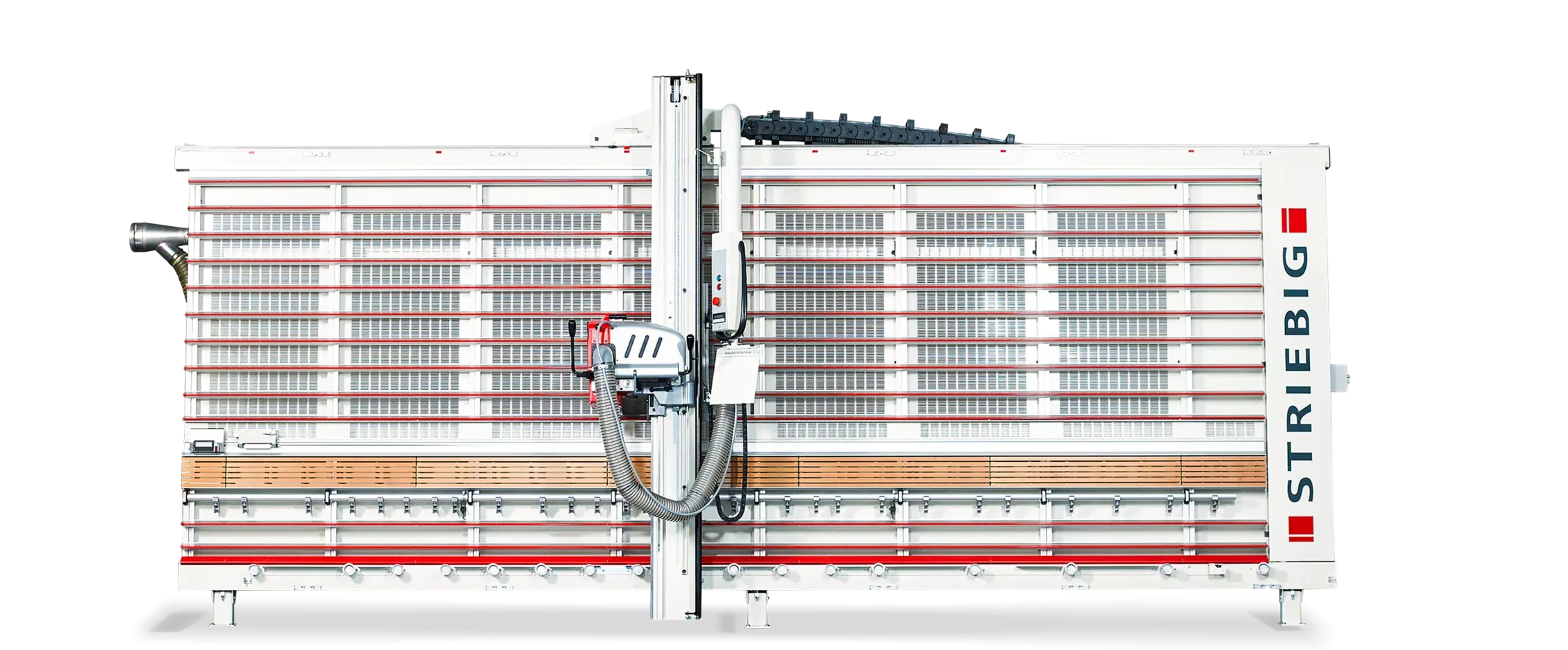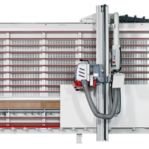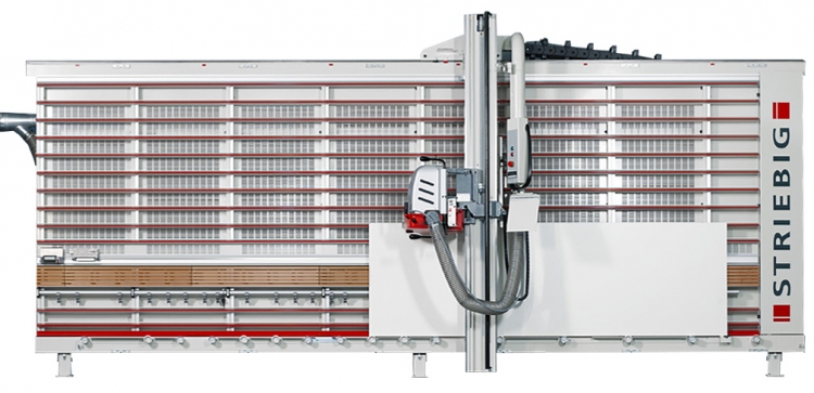 The Compact Plus vertical panel saw is a larger version of the Striebig Compact, which has been so popular with small to medium cabinet shops since its introduction. Built with the traditional Swiss quality that has made the Striebig name legendary in the world of panel cutting, this saw is the ultimate in value for the dollar. With an expanded 15′ 1″ cutting capacity, it has all of the features of its little brother, including heavy-duty rollers for ease of panel handling, a 10′ center shelf with built in support for small pieces, automatic shifting support grid, 4 HP motor with electric brake, and an optional split blade scoring saw unit. The saw is ideal for the shop that primarily cuts single sheets (although it does have multiple sheet capability with 2-3/8″ depth of cut) and wants the ability to cut larger panels or the occasional solid surface sheet. As expected, the Compact Plus is a versatile machine designed to accept the unique range of Striebig options, including digital measuring, an angle cutting device, and various grooving tools.