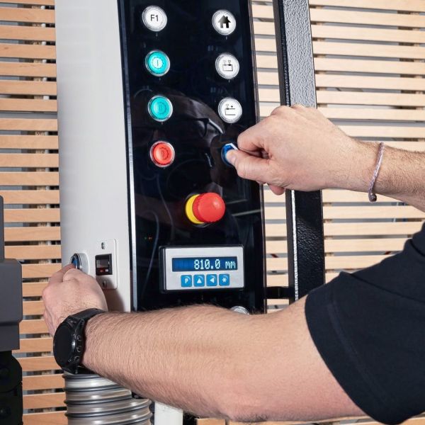 • DMS-X digital measuring system for vertical cuts with fine adjustment and five station reference; either above the center shelf (typical)or on full-length measuring channel described below