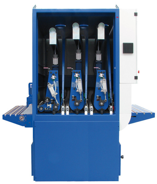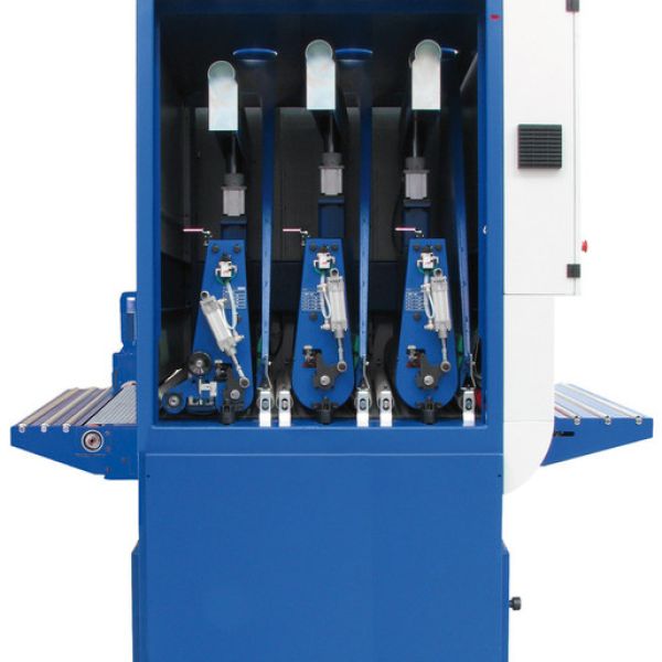 The SK-Series machine comes in several different configurations with drums and pads. Available in working widths of 45″ and 52″, variable feed speed, vacuum plant for processing small parts, and built-in roller table extensions.
